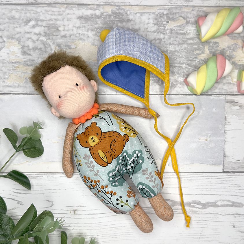 Contém os moldes da cabeça, do corpo e do gorro de pompom em tamanho real, prontos para imprimir, e passo a passo detalhado de como transferi-los no tecido.